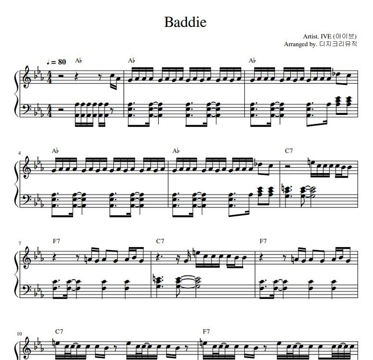 아이브(IVE) - Baddie 피아노 악보입니다.