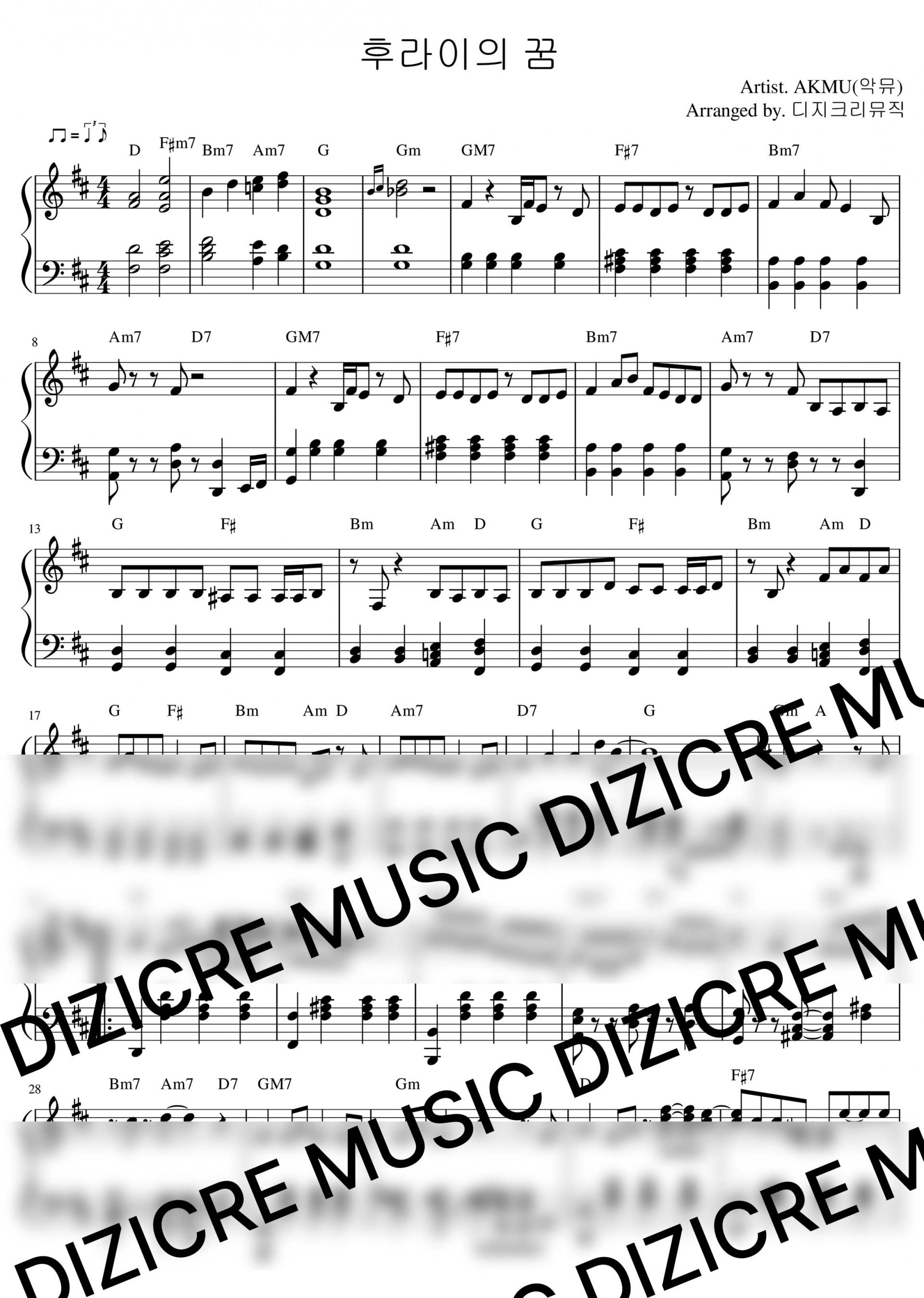 AKMU(악뮤) - 후라이의 꿈 피아노 악보