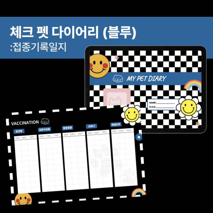 체크 펫 다이어리 🐶 접종 기록 일지 (블루)