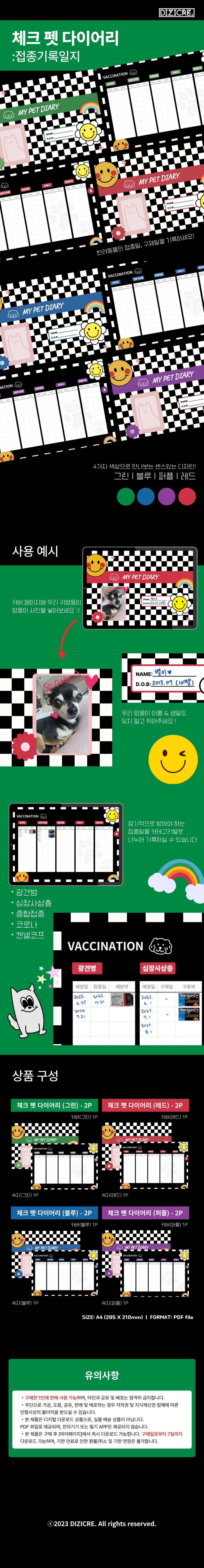 반려동물을 위한 접종 기록 일지 디지털 노트 템플릿입니다. 반려동물의 접종일, 구제일을 잊지 말고 기록해주세요 :)